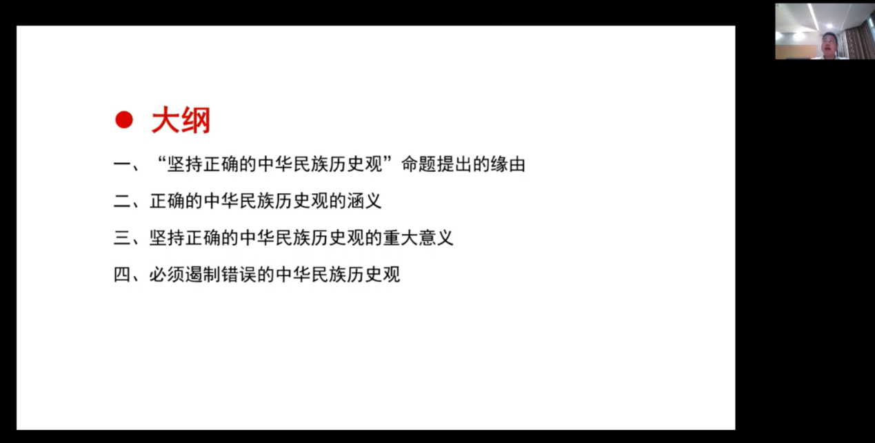 楊須愛以“第二講 樹立正確的中華民族歷史觀”為主題,圍繞“堅持正確的中華民族歷史觀”這一核心命題,從命題提出的背景、內涵要義、重大意義以及錯誤史觀的批判四個方面展開系統講解。他指出,正確的中華民族歷史觀是鑄牢中華民族共同體意識的根基,其深刻內涵集中體現為“五個共同”的重要論述。