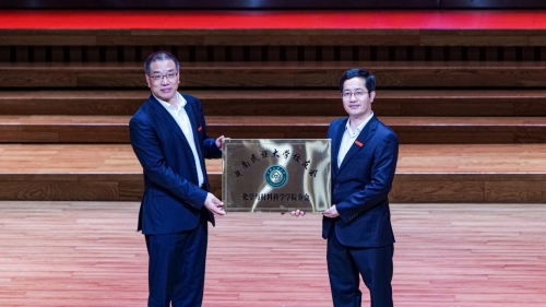 會上,化材學院作為學校碳中和研究院牽頭單位,校黨委常委、副校長方德斌為該研究院院長張道洪授牌。