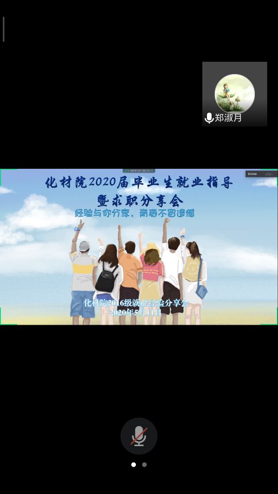 5月11日晚19點,化材院舉辦2020屆畢業生就業指導暨求職分享會視頻會議,2020屆優秀畢業生代表主講,張藝、崔陽林,劉成耀,曾昊,楊凱主講,化材院部分學生與會,化材院畢業班輔導員鄭淑月主持會議。