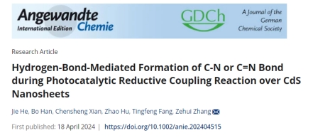近日,學院賀捷博士/張澤會教授團隊在光催化選擇性合成含氮化合物方面取得重要研究進展,該研究成果以“Hydrogen-Bond-Mediated Formation of C-N or C=N Bond during Photocatalytic Reductive Coupling Reaction over CdS Nanosheets”為題在化學類國際頂級期刊Angewandte Chemie International Edition上發表(原文鏈接: https://doi.org/10.1002/anie.202404515)。