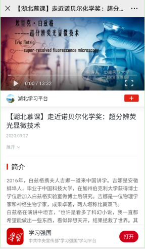 繼2020年3月27日化材學院韓曉樂老師制作的微視頻科普抗疫:《我們距離擁有新冠肺炎疫苗究竟還有多遠?》成功上線學習強國平臺后,3月28日又傳來好消息,化材學院王獻、李琳共同負責的課程《走近諾貝爾化學獎(雙語課程)》在學習強國平臺上線。