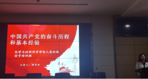 4月27日,學(xué)院93期入黨積極分子培訓(xùn)第四講于在化材樓一樓大會議室順利開展,由2018級輔導(dǎo)員楊夢瑩老師主講。本次黨課主題為《中國共產(chǎn)黨的奮斗歷程和基本經(jīng)驗》。