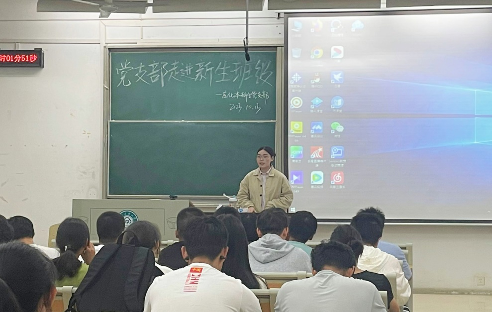 近期,為進一步加深2023級本科新生對中國共產(chǎn)黨的理解和認識,引導(dǎo)新生積極向黨組織靠攏,學(xué)院黨委組織開展“黨支部走進新生班級”活動,面向新生開展黨的專題教育。10月13日晚,應(yīng)用化學(xué)本科生黨支部走進化學(xué)類2301班、化學(xué)類2302班,開展宣講。