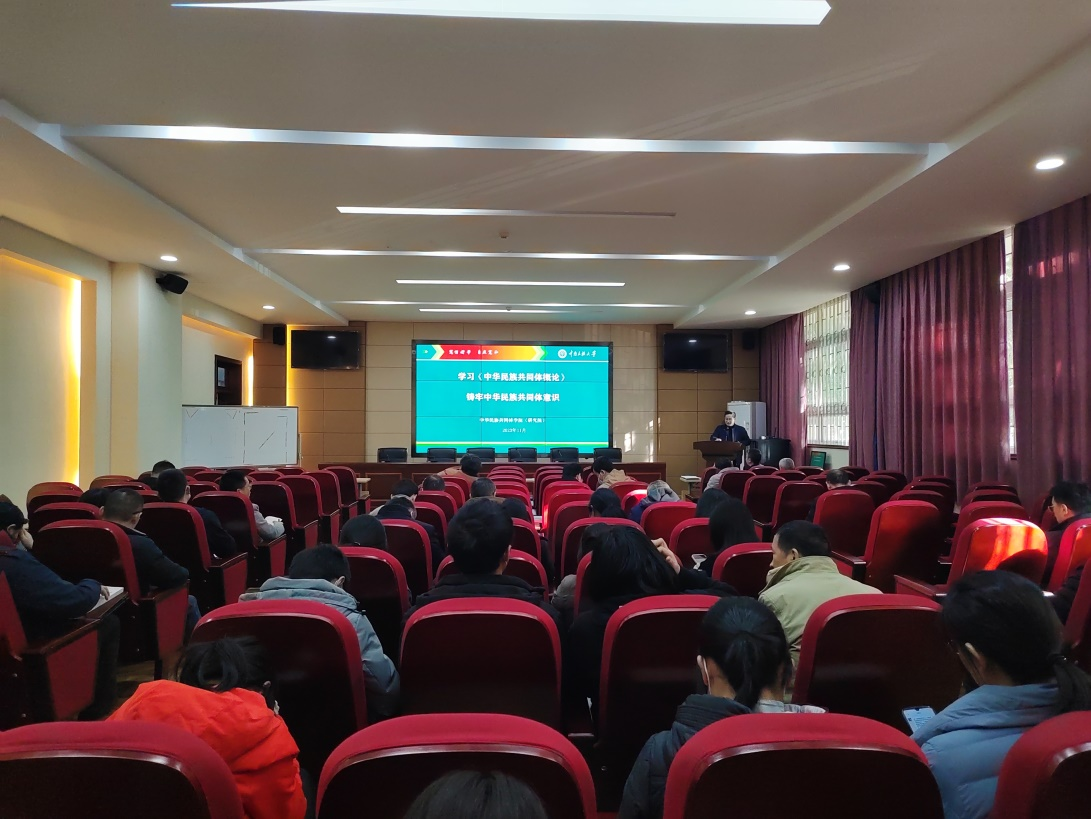 為深入學習貫徹習近平總書記關于加強和改進民族工作的重要思想,落實《中華民族共同體概論(試用本)》的學習和試講試用工作,教育引導干部教師牢固樹立正確的中華民族歷史觀,聚焦鑄牢中華民族共同體意識主線工作,全面落實立德樹人根本任務。12月8日下午,中華民族共同體學院(研究院)院長李從浩教授受邀來我院作《中華民族共同體概論(試用本)》專題宣講報告,學院全體教職工參加,報告會由學院黨委書記祁帆主持。