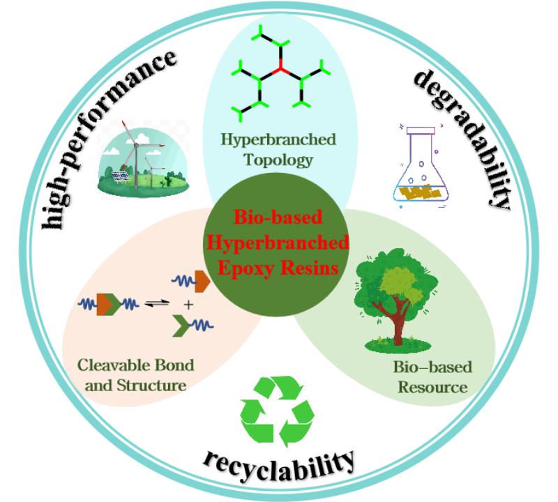 文章信息:Yu Jiang#, Jiang Li#, Dan Li, Yunke Ma, Shucun Zhou, Yu Wang and Daohong Zhang*. Bio-based hyperbranched epoxy resins: synthesis and recycling. Chem. Soc. Rev. 2024, https://doi.org/10.1039/D3CS00713H.