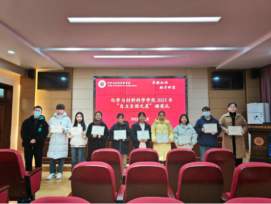 為弘揚我院勤工學(xué)子自立自強的奮斗精神,鼓勵廣大師生積極參與勤工助學(xué)工作。12月21日,化學(xué)與材料科學(xué)學(xué)院在本院110會議室舉行院級“自立自強之星”頒獎儀式,為2023年獲獎學(xué)生頒獎。頒獎儀式由學(xué)院資助工作負(fù)責(zé)人葉烜瑞老師主持,獲獎學(xué)生及學(xué)院資助工作學(xué)生干部參會。