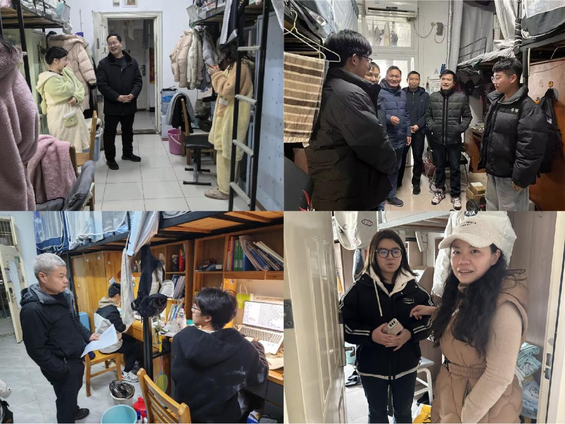 2025年2月24日,化材學院組織班導師走訪學生宿舍,學院領導祁帆、錢紅亮、金士威、李琳和各年級輔導員、班導師一起走進學生宿舍,了解學生返校情況和假期經歷,關注學生思想動態。
