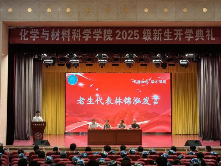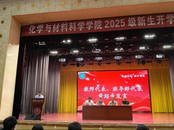 教師代表黃紹專教授指出化學與材料學科是揭示物質變化規律的鑰匙和構筑現代文明的基石,期望新生筑牢專業根基、勇于實踐探索、拓展學術視野、錘煉品格修養,表示全體教師將竭盡所能為學生的成長保駕護航。