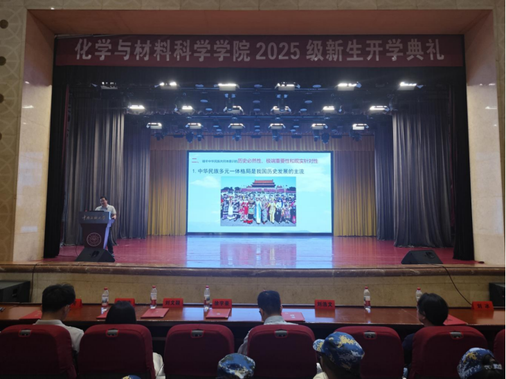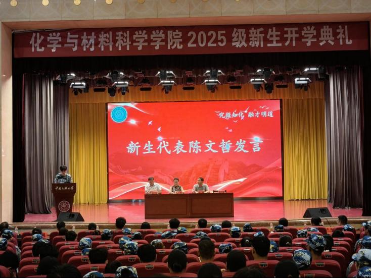 9月17日上午,化學與材料科學學院2025級本科生開學典禮于學術會堂隆重舉行。學院黨委書記祁帆,黨委副書記錢紅亮,紀委書記、副院長金士威,副院長李琳,各系主任、教師代表、輔導員、班導師、高年級學生代表及全體2025級本科新生共同參加本次典禮。典禮由錢紅亮主持。