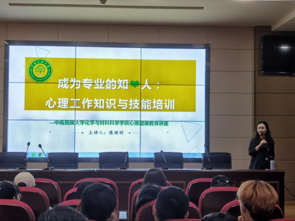 為提高我院學生心理素質、讓學生了解更多的心理知識,2021年5月14日晚,我院邀請到中南財經政法大學的康麗婷老師于化材樓會議室為學生們做心理培訓。本次培訓會我院楊夢瑩老師主持,參會學生為一年級全體寢室長及本科生全體心理委員。