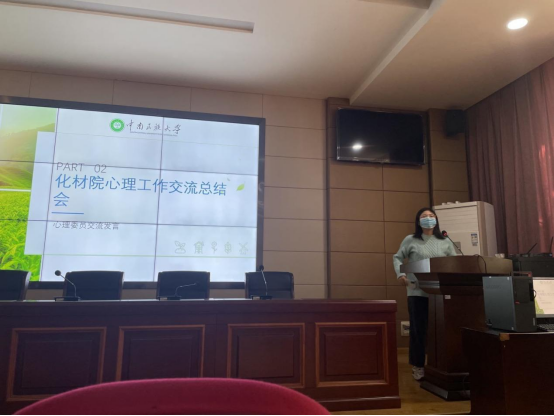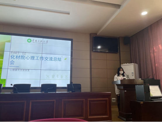 來自化工2002班的覃旎同學以學姐的身份來給21、22級的同學們分享了自己作為心理委員以來的經驗。