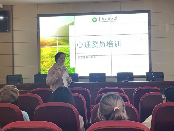2022年11月10日,張雪花老師在化材樓一樓大會(huì)議室針對(duì)全院的心理委員開展培訓(xùn)工作,老師首先講了心理委員工作的重要性,她表示擔(dān)任心理委員是非常重要的工作,心理委員是同學(xué)們心理安全、身心健康的守護(hù)者。張老師認(rèn)為心理委員是老師和同學(xué)之間交流溝通的橋梁,要具有獲取關(guān)鍵信息的敏銳性,第一時(shí)間把危險(xiǎn)的情況及時(shí)的報(bào)告給老師以及心理相關(guān)工作人員。