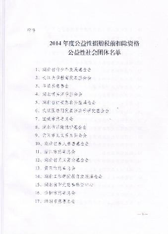 關于公布2014年度獲得公益性捐贈稅前扣除資格的公益性社會團體名單的通知