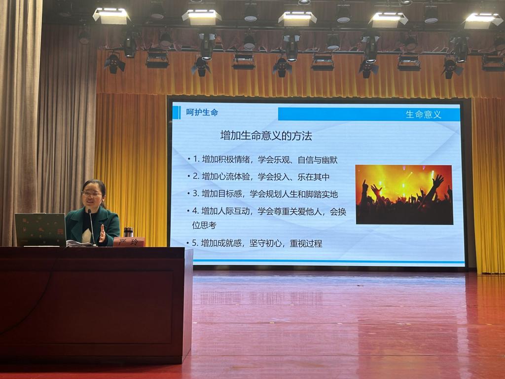 嚴玲老師以《生命教育》為題,圍繞大學生常見的“為什么”、“我是誰”、“自己有何價值”、“人生的意義是什么”四個問題,從學業、生活、情感等方面娓娓道來,全方位、多角度與同學們暢談生命的意義,分享心理學知識。