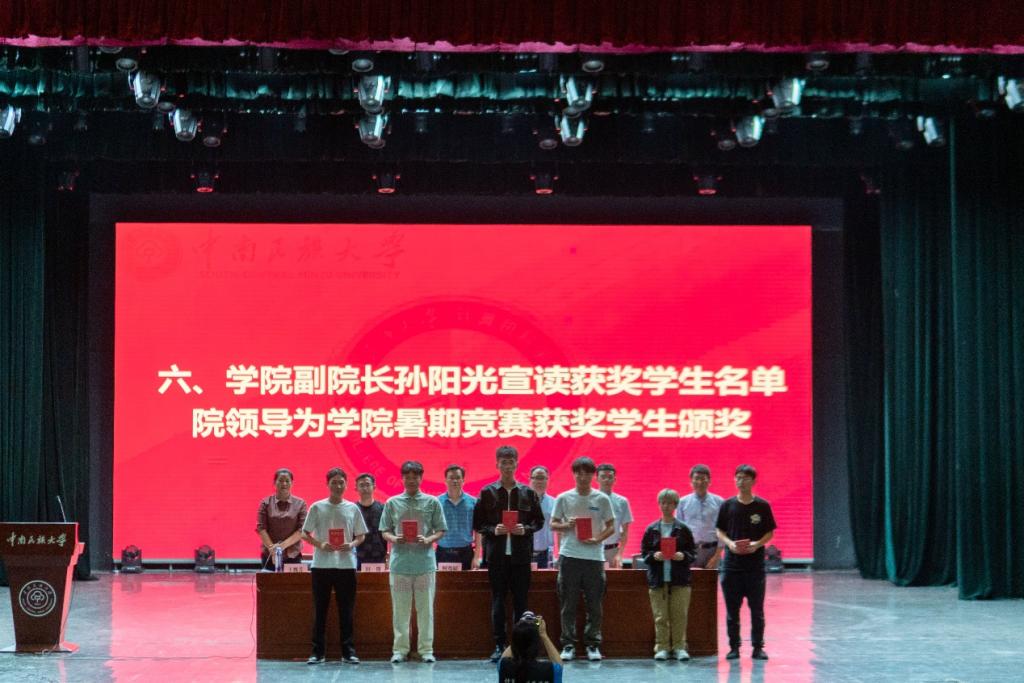 隨后,學(xué)院副院長(zhǎng)孫陽(yáng)光宣讀獲獎(jiǎng)學(xué)生名單,院領(lǐng)導(dǎo)為學(xué)院暑期競(jìng)賽獲獎(jiǎng)學(xué)生代表頒獎(jiǎng)。