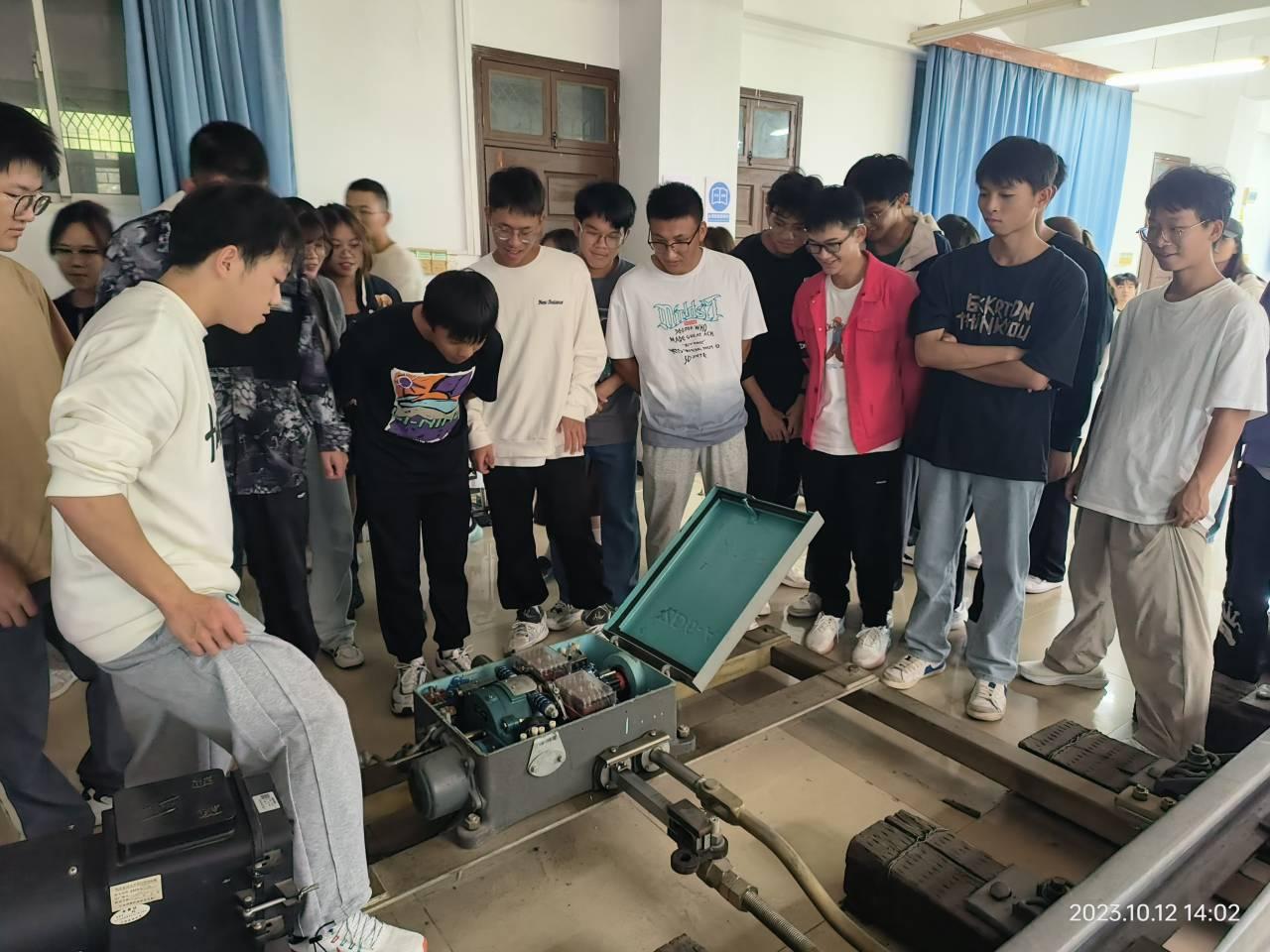 在軌道交通虛擬仿真實驗室中,學長給新生展示了ZD-6型轉(zhuǎn)轍機等軌道機械設備;在電賽實驗室中學長們?yōu)樾律臏蕚淞烁鞣N電子DIY作品展示區(qū),琳瑯滿目的同軸電纜長度測量裝置、運動目標自動追蹤裝置、功放電路等作品呈現(xiàn)在新生前面;在智能車實驗室,上一屆比賽的國賽車飛馳在賽道博得新生眼前一亮。