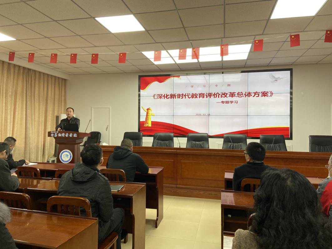 會上,帖軍副院長帶領大家從《方案》的總體要求、重點任務及組織實施等三個方面進行了解讀,并分享了個人思考和感悟,指出一線教師在工作中應不斷提高站位,深刻認識深化新時代教育評價改革的重大意義,深入一線了解學生,認真查找教學和育人工作中存在的不足和短板,破立并舉,持續改進。