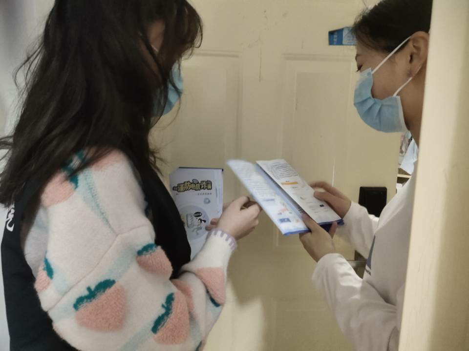 圖:團委學生會上寢室發(fā)放防詐騙手冊,許霜燕攝