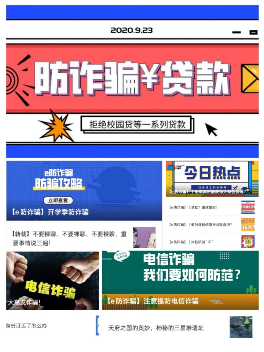 計算機科學學院官方公眾號“計科e點通”定期發(fā)布相關推文,將市面最新的詐騙手法對同學們進行詳細介紹,并列出了防范詐騙的攻略,幫助同學們有效識別詐騙,保護自身權益不受損害。