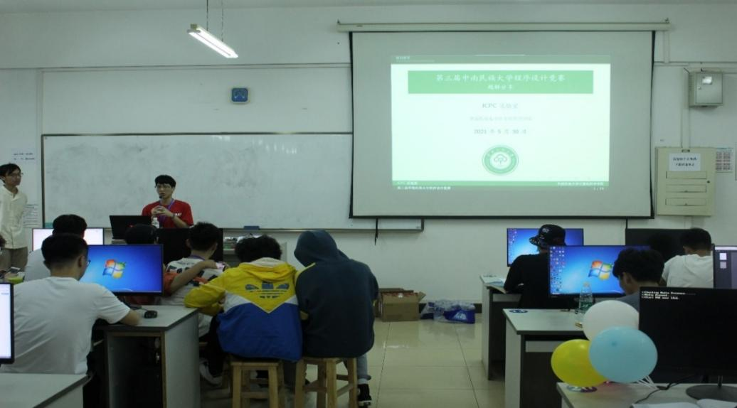 為培養我校大學生的創新思維和提高利用計算機分析問題、解決問題的能力,2021年5月30日12點至17點,由中南民族大學創新創業學院主辦、計算機科學學院ICPC實驗室承辦的中南民族大學第三屆程序設計競賽在9棟204、205、206實驗室舉辦,本次比賽共有114名同學參加,劉衛平擔任指導老師。