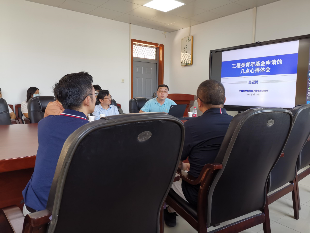 2021年9月10日下午,應學院邀請,中科院合肥等離子體所的吳亞楠副研究員在9號教學樓213室做了題為“如何撰寫國基金申請書”的報告。學院院長覃俊、副院長李子茂、田微和學院擬申報2022年國家自然科學基金的部分教師參加了本次研討會。會議由學院副院長田微主持。