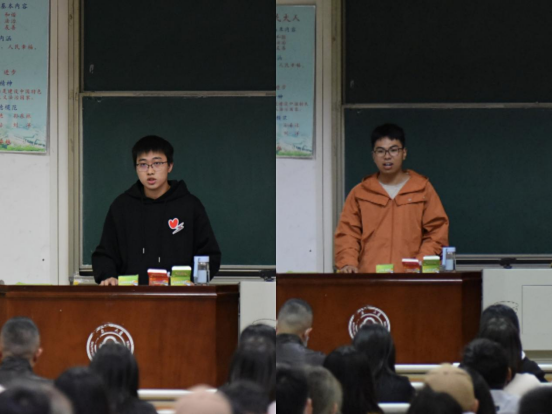 隨后,入黨積極分子學員代表2020級鄭博文、發展對象學員代表2020級李士熹同學上臺發言。他們代表全體同學鄭重承諾:作為新世紀的新青年,認真嚴肅的對待每一次學習,努力實踐,開拓進取,勇于創新,不斷提高自身素質。