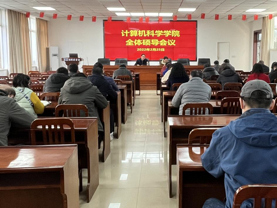 2022年2月25日下午13:30,計算機科學學院黨委書記黎大有,院長、黨委副書記覃俊主持召開本學期的碩士生導師大會,計算機科學學院全體碩士生導師參加會議。