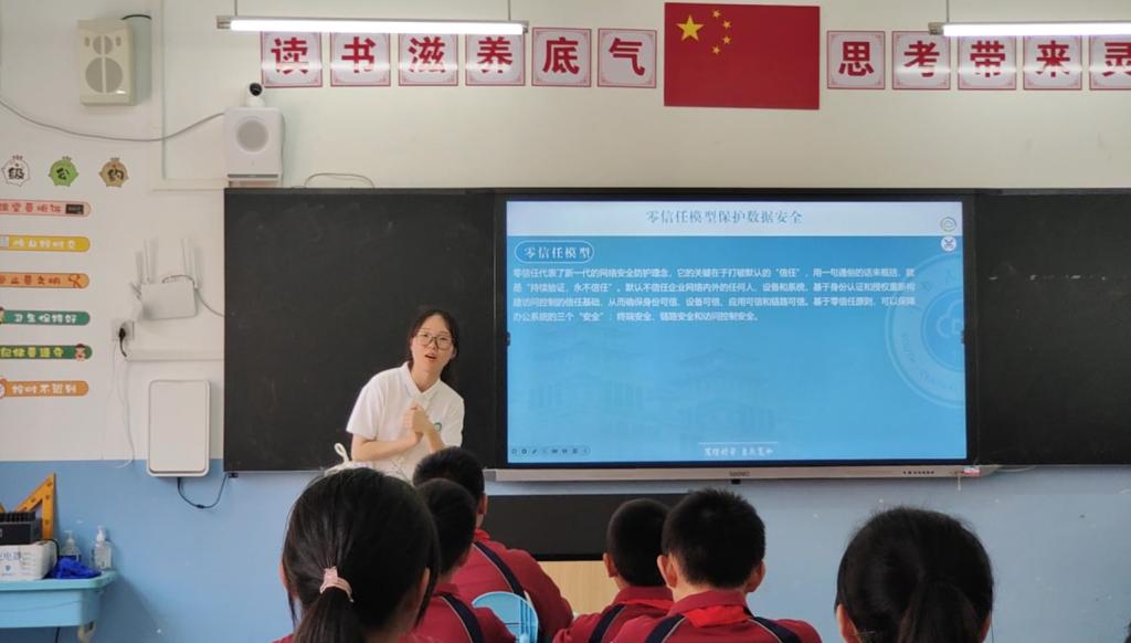 活動中李玉蘭同學與學生積極互動,生動有趣地給學生們介紹了什么是數據和數據的保密性,學生們積極回答,積極參與,李玉蘭同學與學生們共同探討列舉了一系列可能發生數據泄露的場景,使得學生們更加理解數據泄露無時無刻不在發生,在日常生活中也能更加注重保護自己的數據安全。學生們了解了數據泄露帶來的危害,積極思考怎樣做才能保障好數據安全,在李玉蘭同學的講解下讓學生們認識了零信任模型以及零信任模型的優點,希望學生們在日常生活中遇到數據泄露風險時能夠保護好自己的數據安全。