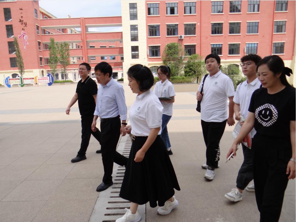 圖:安順市政府辦秘書一科劉洋科長與安順市實驗學校經濟技術開發區分校校長楊苧來到教室聽講