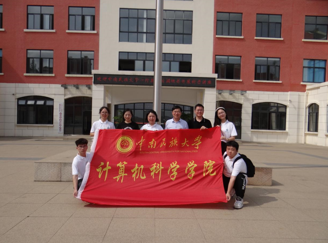 圖:中南民族大學平安順意科普團隊與安順市實驗學校領導合照 (第二排:左起第一位:科普團隊隊員計算機科學學院網絡工程2103班李玉蘭 ,左起第二位:安順市實驗學校經濟技術開發區分校校長楊苧,左起第三位:中南民族大學計算機科學學院朱劍林老師,左起第四位:安順市經開區教育局副局長梁冬洪,左起第五位:安順市政府辦秘書一科劉洋科長,左起第六位:科普團隊隊員計算機科學學院軟件工程2103班王曉雨 ,第一排:左起第一位:科普團隊隊員計算機科學學院網絡工程2103班閔浪江,左起第二位:科普團隊隊員計算機科學學院計算機類2202班史啟睿)