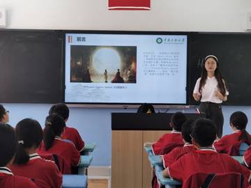 圖:王曉雨隊(duì)員為同學(xué)們科普AI繪畫知識(shí)