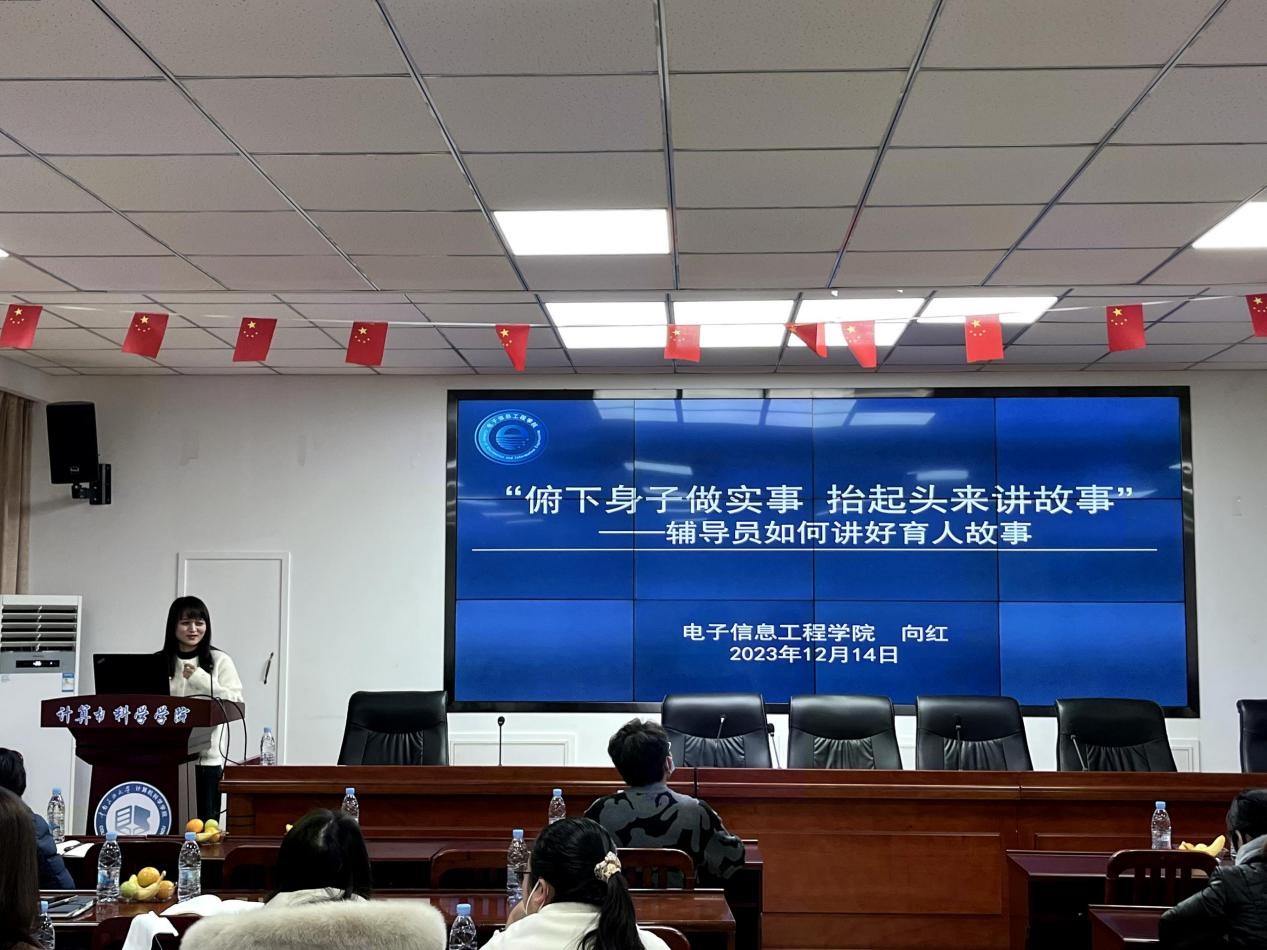 本期“輔導員思享匯”的主題為“俯下身子做實事,抬起頭來講故事——輔導員如何講好育人故事”,由電子信息工程學院學工辦主任向紅擔任分享人。向紅老師具有豐富的學生工作經驗,連續兩年獲得湖北省輔導員職業能力大賽二等獎。在今年4月,向紅老師組建“和合”工作室,獲批國家民委首批“道中華”工作室;6月,獲批湖北省教育廳輔導員工作精品項目1項。