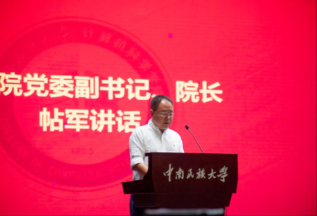 開學典禮在雄壯的國歌聲中拉開帷幕,院長帖軍教授講話時表示“大學是成長成才的重要平臺,希望同學們進入大學要做好規劃,盡快立下四年的flag”,他圍繞計科院的五個特點,詳細闡述了學院的辦學規模、專業覆蓋面、未來就業、學生創新團隊與班導師制度,并形象的將人生比作CPU、內核、顯卡與操作系統,希望同學們能夠把握寶貴的大學時光,四年后進入全新的人生階段。