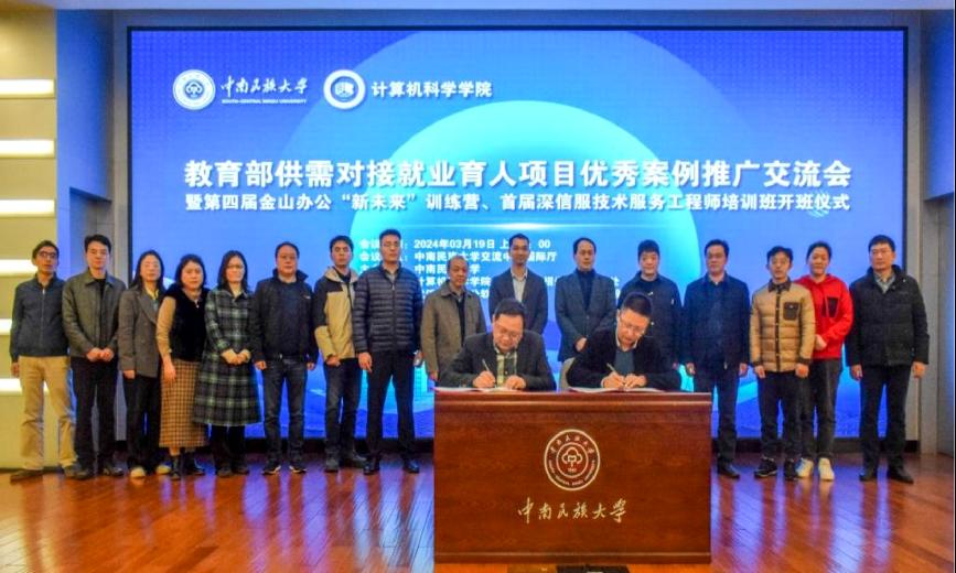 3月19日,在教務處、招就處、國資處等相關職能部門和學院領導的大力支持和指導下,中南民族大學和深信服科技股份有限公司精心籌備,攜手拉開了首屆聯合培養計劃的帷幕,標志著我校計算機科學學院在產教融合助推人才培養進程中,開啟新篇章。