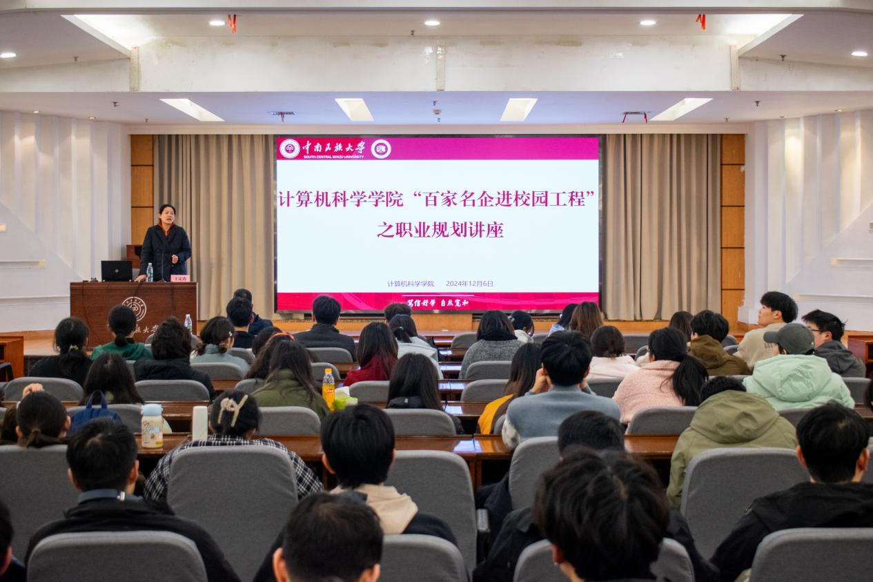 人生的關(guān)鍵時(shí)刻,是繼續(xù)深造,還是選擇就業(yè),或者考公留學(xué)?2024年12月6日晚上6點(diǎn),計(jì)算機(jī)科學(xué)學(xué)院在中南民族大學(xué)學(xué)術(shù)交流中心潤(rùn)良報(bào)告廳成功舉辦“百家名企進(jìn)校園工程”系列活動(dòng),特邀深信服科技華中區(qū)人力資源總監(jiān)王定濤作職業(yè)規(guī)劃專題講座,2023級(jí)計(jì)算機(jī)科學(xué)與技術(shù)、網(wǎng)絡(luò)工程與人工智能專業(yè)約280名學(xué)生參加。講座由學(xué)院黨委副書記、紀(jì)委書記王魏芳主持。