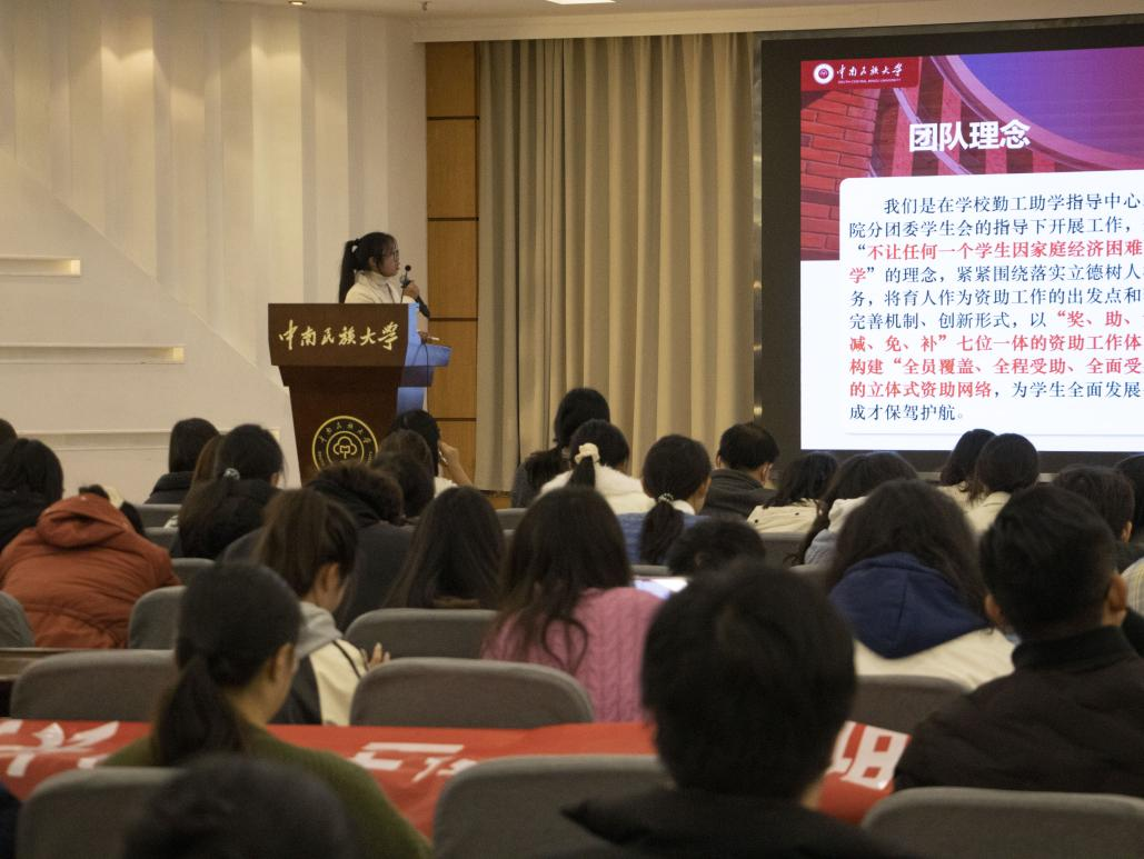 據悉,2024年11月28日,勤工部鐘湘鄂同學代表學院參加勤工助學先進集體答辯,在答辯中,她圍繞學院家庭經濟困難新生認定和建檔、國家獎學金及國家勵志獎學金審核報送、助學金評定審核等日常工作和學院特色志愿服務活動——“愛心傳遞 情暖夕陽”養老院志愿服務活動等,向學校匯報了學院資助育人工作的開展情況,展示了學院在資助育人方面的創新實踐和豐碩成果。