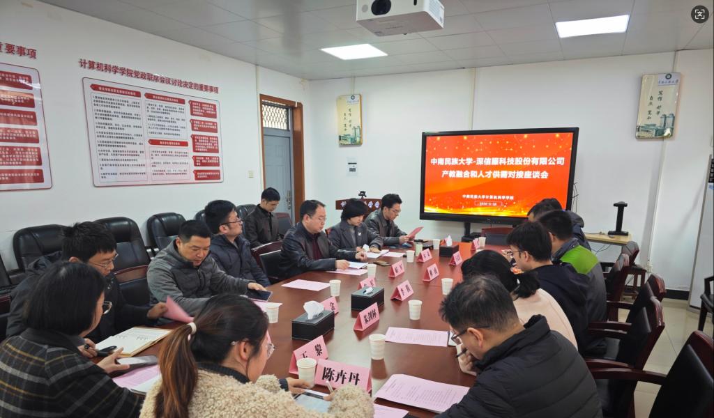 3月20日,深信服科技股份有限公司全國(guó)招聘總監(jiān)柳南、校園招聘總監(jiān)李騰、華中區(qū)人力資源總監(jiān)王定濤一行到訪(fǎng)中南民族大學(xué)計(jì)算機(jī)科學(xué)學(xué)院,圍繞深化產(chǎn)教融合、促進(jìn)校企人才精準(zhǔn)對(duì)接等議題展開(kāi)座談交流。計(jì)算機(jī)科學(xué)學(xué)院院長(zhǎng)帖軍、招生就業(yè)處副處長(zhǎng)朱軍、數(shù)學(xué)與統(tǒng)計(jì)學(xué)院黨委副書(shū)記宋榮、副院長(zhǎng)夏永波、計(jì)算機(jī)科學(xué)學(xué)院副院長(zhǎng)孫陽(yáng)光、電子信息工程學(xué)院副院長(zhǎng)侯金、生物醫(yī)學(xué)工程學(xué)院科研秘書(shū)陳卉丹、法學(xué)院輔導(dǎo)員張利菊,以及計(jì)算機(jī)科學(xué)學(xué)院網(wǎng)絡(luò)工程系支部書(shū)記朱劍林、系主任王俊、軌道交通信號(hào)與控制專(zhuān)業(yè)負(fù)責(zé)人王黎等近20人參與座談。會(huì)議由計(jì)算機(jī)科學(xué)學(xué)院副院長(zhǎng)張瀟主持。