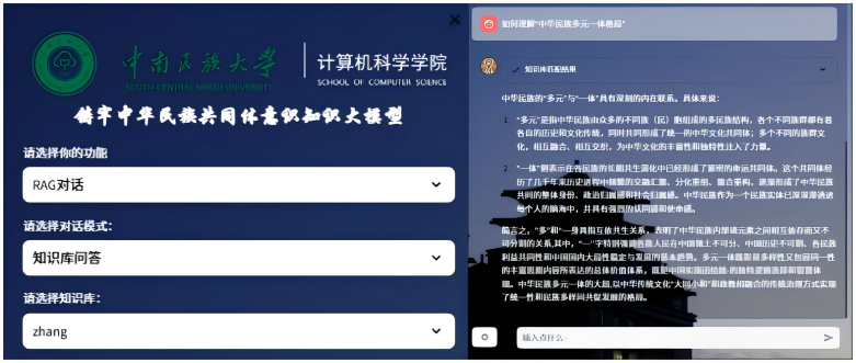 計算機科學學院成功上線“鑄牢中華民族共同體意識知識大模型” 積極推進人工智能有效賦能鑄牢工作
