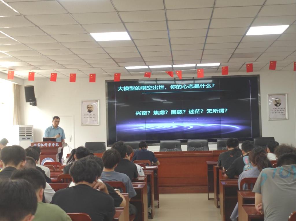 接著,職業發展專家王定濤老師圍繞《選擇改變未來》展開分享,從職業規劃角度為學子指點迷津。他結合當前AI技術浪潮對就業市場的沖擊,提出“選擇比努力更重要”的核心觀點,建議學生關注行業趨勢,培養創新思維,提升核心競爭力。針對就業環境,王定濤老師呼吁“弱者抱怨環境,強者改變自身”,鼓勵學生明確目標、勇于嘗試、堅持行動,他始終堅信“極致自律才有極致自由”,建議同學們“要用四年時間成就一件事”。在職業選擇上,他以“江水不爭先,爭滔滔不絕”寄語學生,并強調“機會稍縱即逝,寧可試錯也不錯過”,要在變革中主動適應、抓住機遇,以行動化解焦慮,以長期思維應對職業挑戰,避免陷入內耗與短期蠅頭小利。