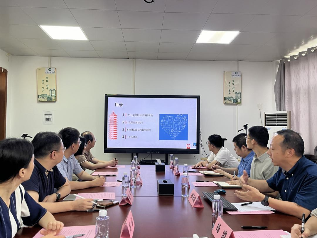 本次活動特別邀請了“101計劃”工作組專家、教育部高校網絡空間安全專業教學指導委員會委員、中國人工智能學會離散智能計算專業委員會副主任,北京大學計算機學院曹永知教授來校開展專題研討,指導 “101計劃”下《離散數學》課程的教材建設、教學理念和資源體系建設。學院院長帖軍、副院長孫陽光、本科生院副院長劉晶、各系主任及黨支部書記、骨干教師代表等10余人參會,會議由孫陽光主持。