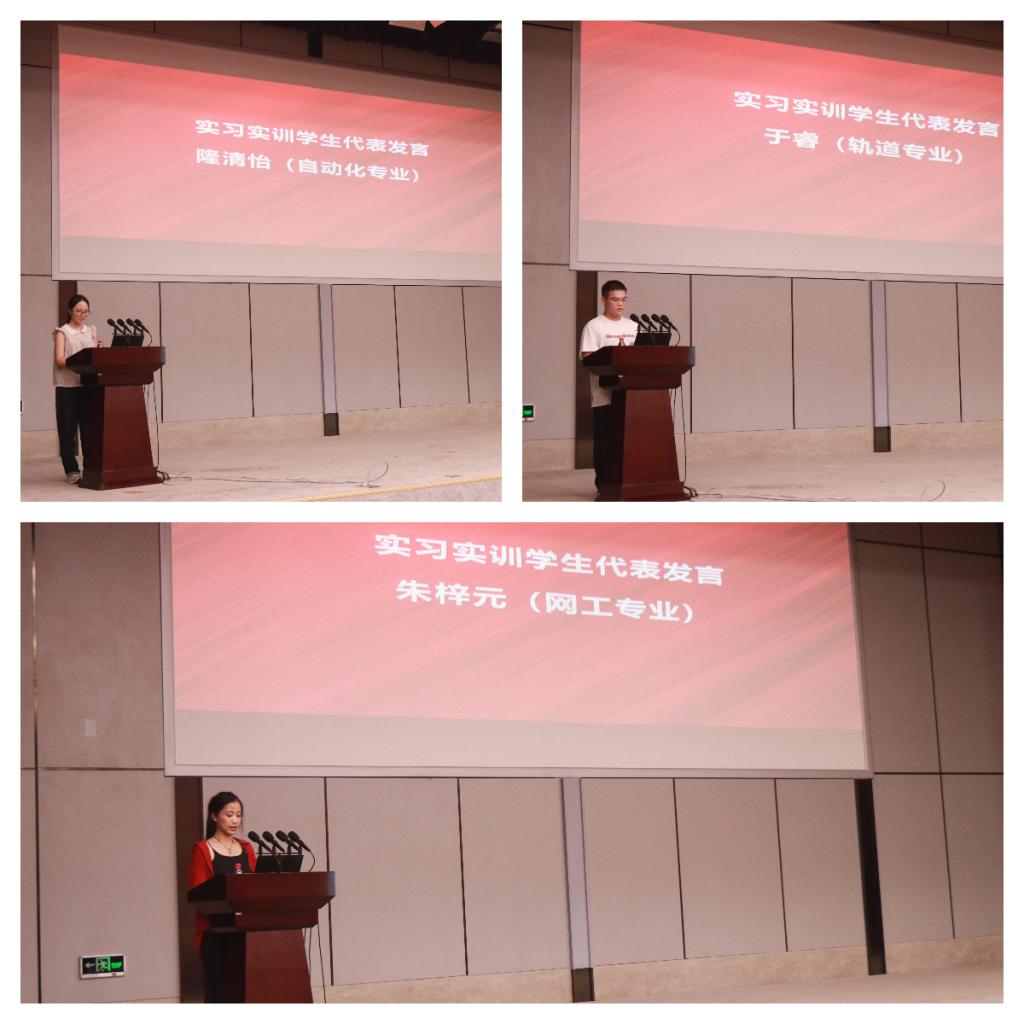 參加本次生產(chǎn)實習(xí)的2022級學(xué)生代表發(fā)言。自動化專業(yè)隆清怡以“紙上得來終覺淺,絕知此事要躬行”的真切體會向企業(yè)導(dǎo)師致謝,表示實習(xí)中工程師的工匠精神和“持續(xù)改進”理念為她樹立了職業(yè)標桿。軌道專業(yè)于睿同學(xué)形容一周的實習(xí)堪稱“沉浸式實踐課堂”,并表示將以嚴謹?shù)墓こ趟季S為軌道交通事業(yè)貢獻自己的青春力量。網(wǎng)絡(luò)工程專業(yè)朱梓元同學(xué)則勉勵大家:技術(shù)人不僅是“敲代碼”的工匠,更是國家數(shù)字基建的“螺絲釘”,應(yīng)懷揣“小我融入大我”的使命感,由此出發(fā),將所學(xué)化為實干。