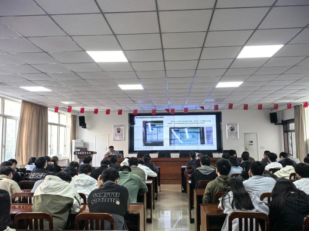 10月29日,由研究生院和計算機(jī)學(xué)院(人工智能學(xué)院)聯(lián)合主辦的“從‘制造’到‘智造’:AI驅(qū)動下的工廠智能”專題講座在9號教學(xué)樓舉行。東風(fēng)設(shè)備數(shù)字智能科技作業(yè)部首席工程師劉繼斌應(yīng)邀主講,計算機(jī)學(xué)院(人工智能學(xué)院)和學(xué)校其他兄弟學(xué)院近百名研究生參加學(xué)習(xí)。講座由計算機(jī)學(xué)院(人工智能學(xué)院)院長帖軍主持。