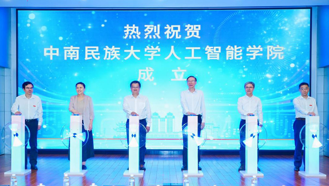 6月5日下午,我校人工智能學院成立大會暨人工智能建設專家報告會在學術交流中心舉行。國家民委教育司司長宋全,中國科學院院士、武漢大學校長張平文,華中科技大學副校長馮丹,小米集團武漢總部總經理王扉,我校黨委書記徐業勤,校黨委副書記、校長劉義,校領導李紅燕、宋發軍、方德斌以及來自北京大學、武漢大學、華中科技大學、北京理工大學、中央民族大學、南京理工大學等20余所高校的專家學者,企業代表、校友代表以及校內各單位負責人和人工智能學院師生代表等200余人參會,共商人工智能學科建設與人才培養新路徑。宋發軍和方德斌分別主持成立大會和專家報告會。