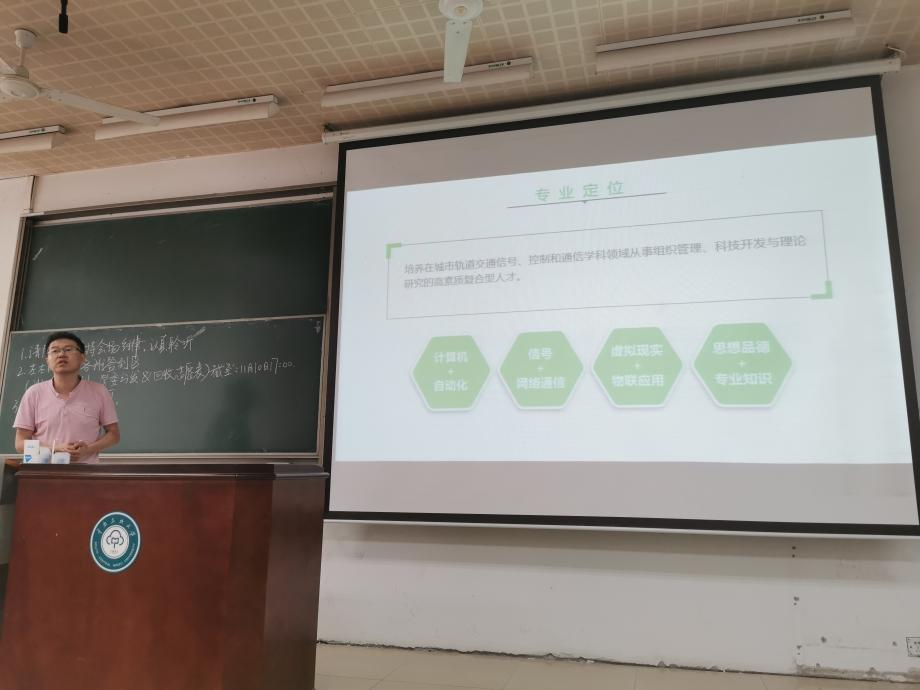 王黎老師為同學們做軌道專業(yè)背景介紹與分流政策講解,從專業(yè)沿革、專業(yè)內涵、專業(yè)應用以及專業(yè)前景幾個方面系統介紹了軌道專業(yè)的和行業(yè),使同學們進一步了解軌道交通信號與控制專業(yè)的就業(yè)方向。