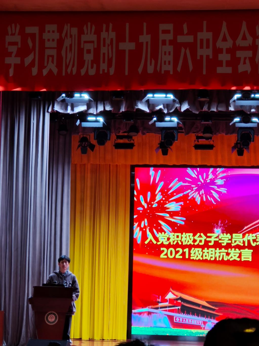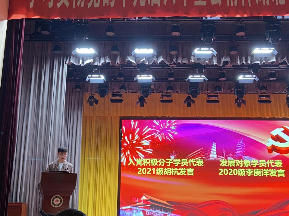 2021級自動化類專業學生胡杭、2020級計算機科學與技術專業學生李庚洋分別作為入黨積極分子學員代表、發展對象學員代表發言。