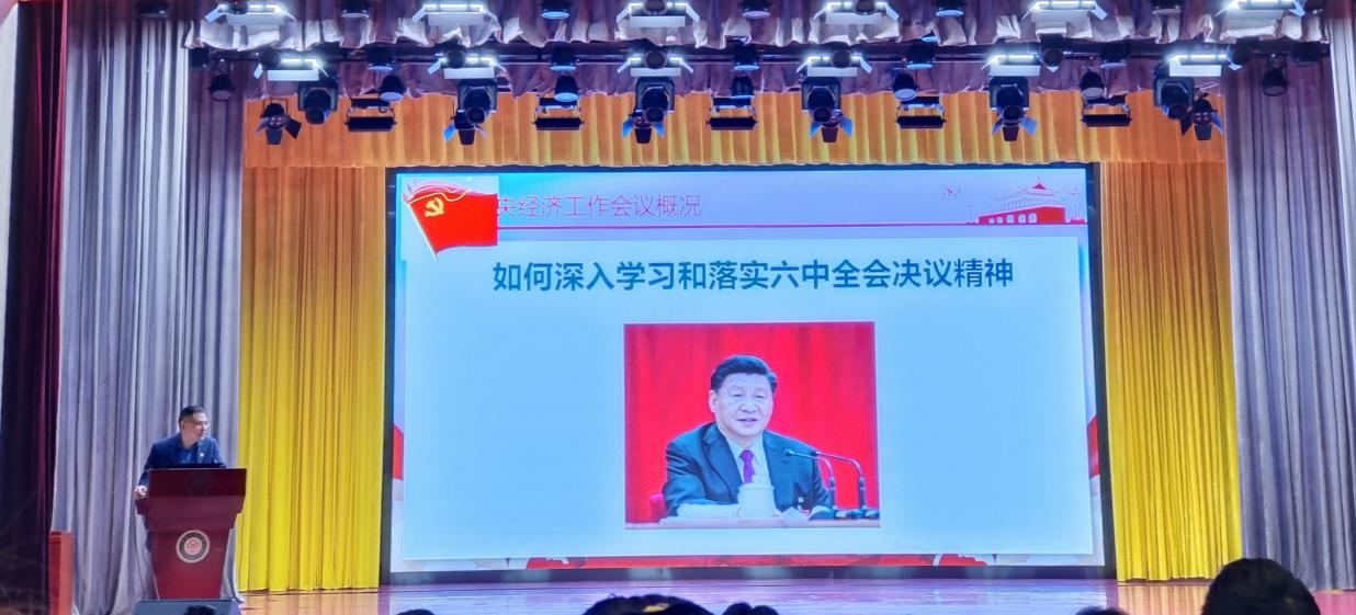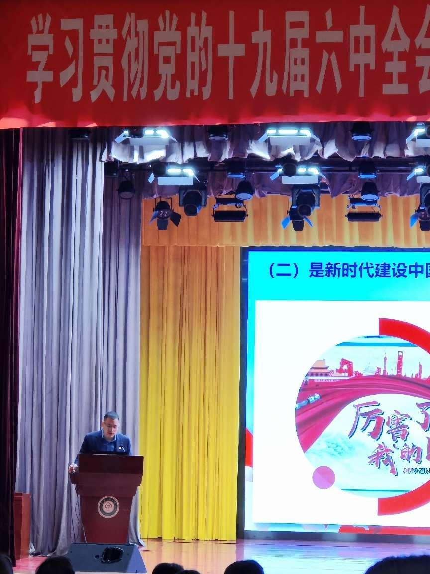 隨后,學院黨委書記黎大有為全體學員講授了題為《從黨的百年奮斗重大成就和歷史經驗中汲取智慧力量——學習黨的十九屆六中全會精神》的主題黨課。他以在重要歷史關頭召開的一次重要會議、黨在歷史上兩個重要的《歷史決議》、黨的十九屆六中全會取得的重要成果為脈絡,闡述了更加堅定自覺地踐行初心使命,在新時代更好地堅持和發展中國特色社會主義,具有重大現實意義和深遠的歷史意義。黎書記以“把握機遇,認真學習”、“把準方向,有效學習”、“把牢方法,善于學習”作為本次講座的結束語,勉勵學員們不負夢想、以史為鑒、開創未來。本次主題黨課是開班第一講,也是思想上的重要一課。