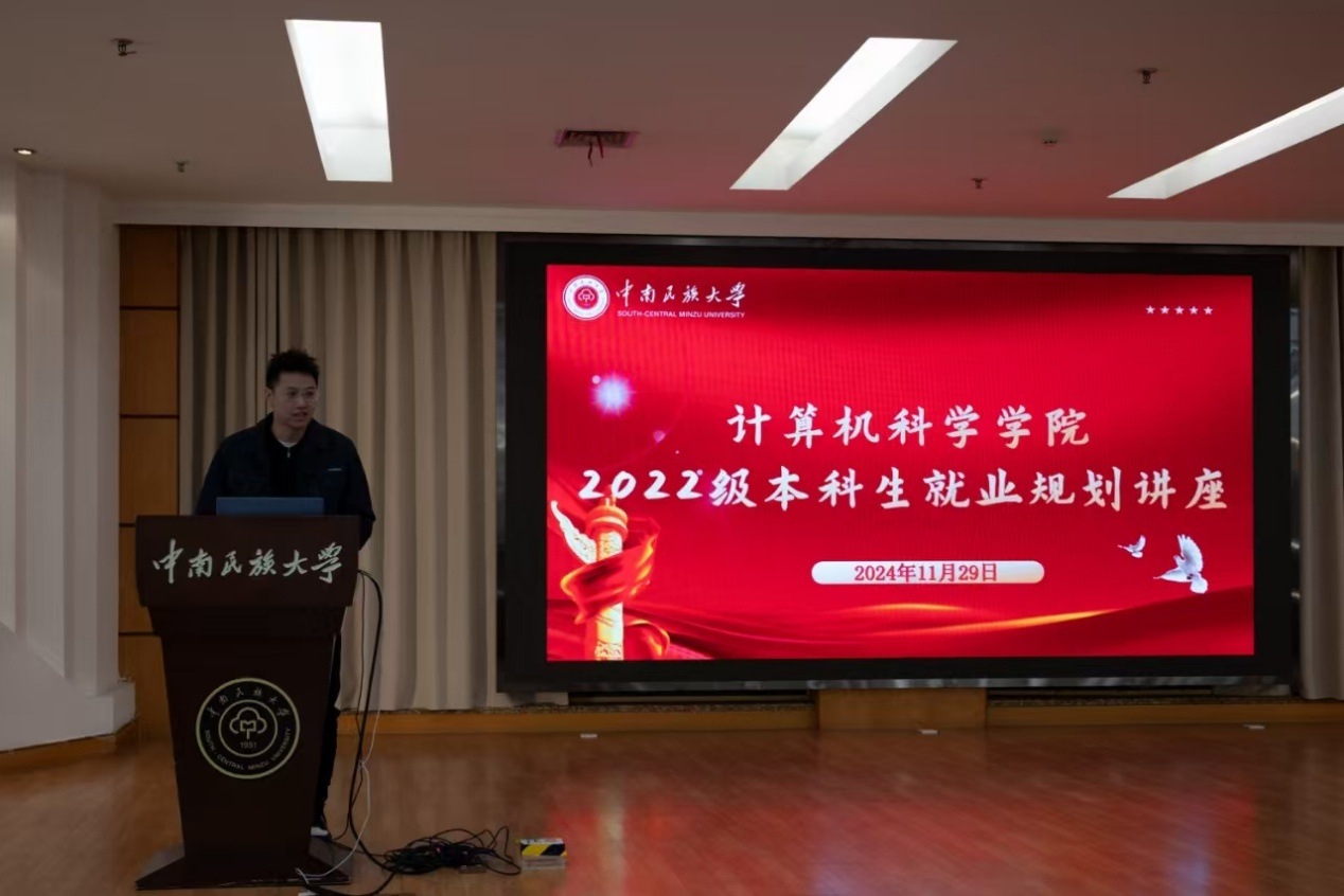2024年11月29日,中南民族大學(xué)學(xué)術(shù)交流中心潤良報告廳內(nèi)燈火通明,一場別開生面的就業(yè)規(guī)劃指導(dǎo)講座在這里成功舉辦。計算機科學(xué)學(xué)院特別邀請2014屆網(wǎng)絡(luò)工程專業(yè)杰出校友、中國信科集團烽火通信公司資深人力資源經(jīng)理楊曉涵女士,為學(xué)院2022級本科生作就業(yè)指導(dǎo)講座。