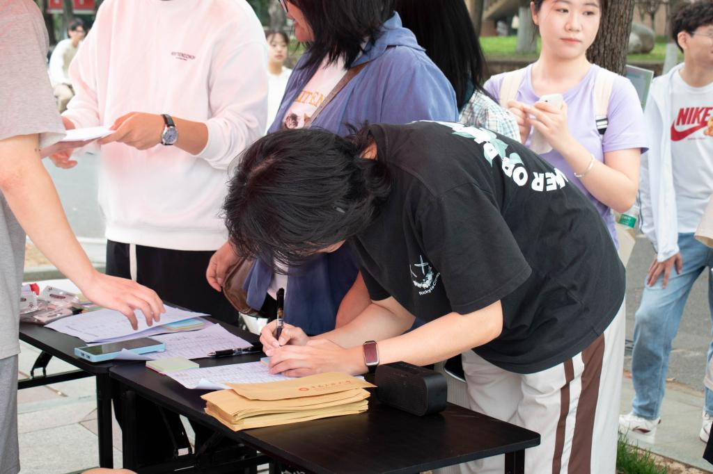 心理減壓趣味運動會正式開始之前,在一、二食堂中間廣場設有三個專區組成的暖場活動。“從前慢—信”、“你要的‘信’福—寫給未來的自己”、“愿明天,帶著我們的夢想,一同起航”三個活動很快的讓學生們活躍起來。