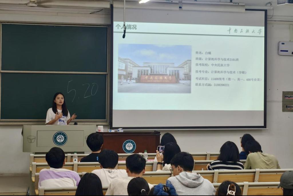 為引導(dǎo)同學(xué)們盡早明確學(xué)業(yè)目標(biāo),科學(xué)規(guī)劃職業(yè)發(fā)展,助力學(xué)生成長(zhǎng)成才,2025年5月20日,我院2023級(jí)計(jì)算機(jī)科學(xué)與技術(shù)專業(yè)在11棟208教室成功舉辦主題為“‘計(jì)’往開來,引航逐夢(mèng)”畢業(yè)生經(jīng)驗(yàn)交流會(huì)。此次活動(dòng)邀請(qǐng)2021級(jí)計(jì)算機(jī)科學(xué)與技術(shù)專業(yè)優(yōu)秀畢業(yè)生彭泰、白蝶、李娜,圍繞保研、考研、考公展開深度分享與交流。學(xué)院計(jì)算機(jī)科學(xué)與技術(shù)系主任徐勝舟參加。