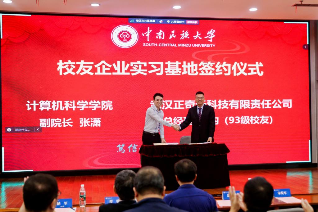 校友企業實習基地簽約儀式在熱烈的掌聲中拉開帷幕,計算機科學學院與武漢正齊云科技有限責任公司、武漢希嘉萬維科技有限公司、蘇州美必家環境科技有限公司簽署合作協議,校企雙方共同展開前瞻性技術和關鍵共性技術研究,并進行產學研轉化,展開創新融合和跨界戰略合作。